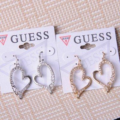 "GUESS" Hanging Heart Crystal 2013 Fashion Earrings, SILVER and GOLD - Beautiful!
