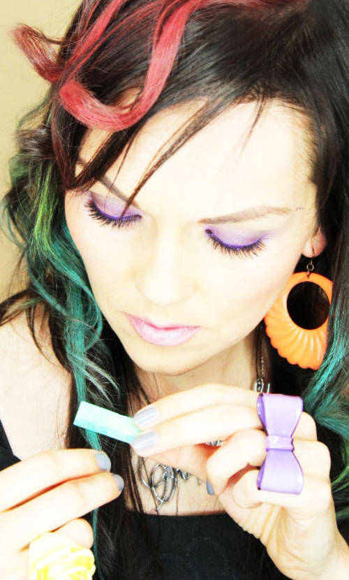 Hair dye is fun, but dangerous. There are so many great hair colors that are appropriate for weekends on the town, but may not be acceptable in the workplace. Colored streaks and dip-dyed ends are examples of two cool, quirky trends that are often neglected because of their semi-permanence and unprofessional nature. But fear not, Lovelyish hair experimenters! There is a new, fun way to go crazy with hair color and still maintain your chic Monday morning office look. Hair chalking is a commitment-free way to add splashes of color to your hair.