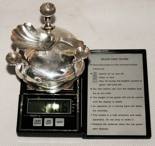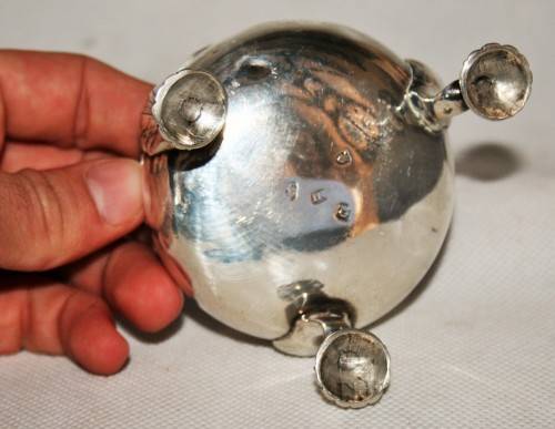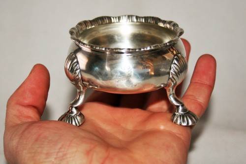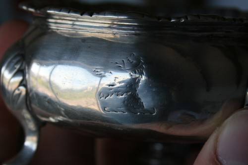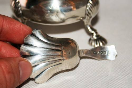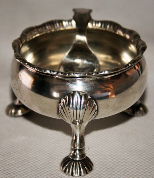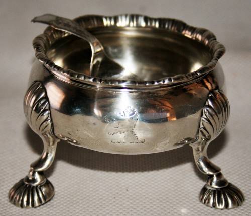 *HALLMARK*RARE GEORGIAN HALLMARKED LONDON SILVER CIRCA 1799 OPEN SALT WITH HALLMARK SILVER SPOON