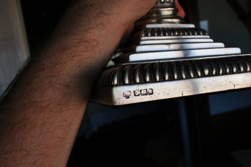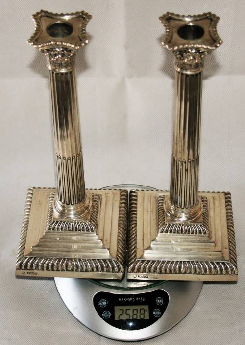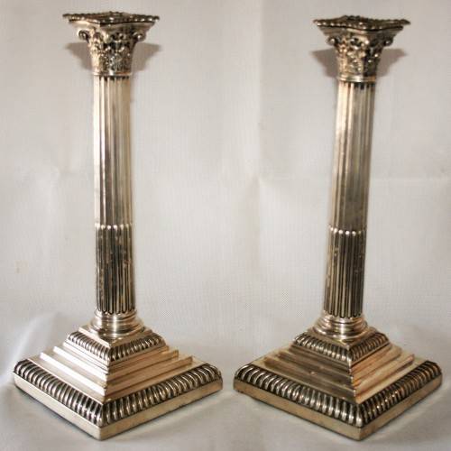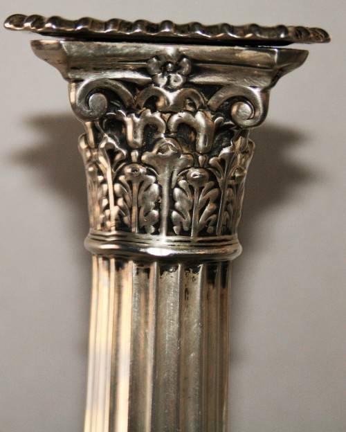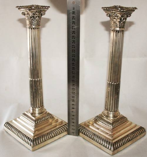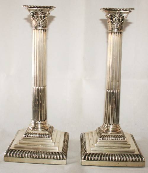 *HENRY STRATFORD*A SCARCE PAIR OF TALL HALLMARK SILVER SHEFFIELD CORINTHIAN PILLAR CANDLESTICKS!! R18500