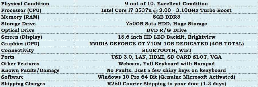 *High Performance* ASUS X552CL Notebook Core i7. 750GB, 8GB Ram, Nvidia Graphics, Win 10
