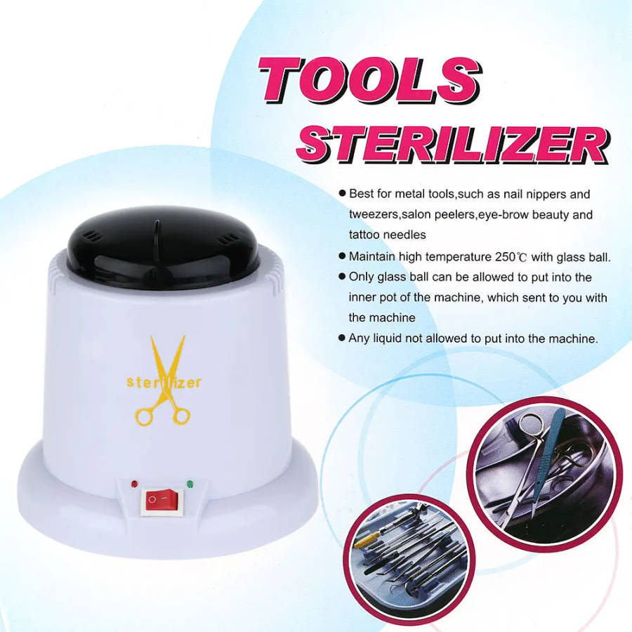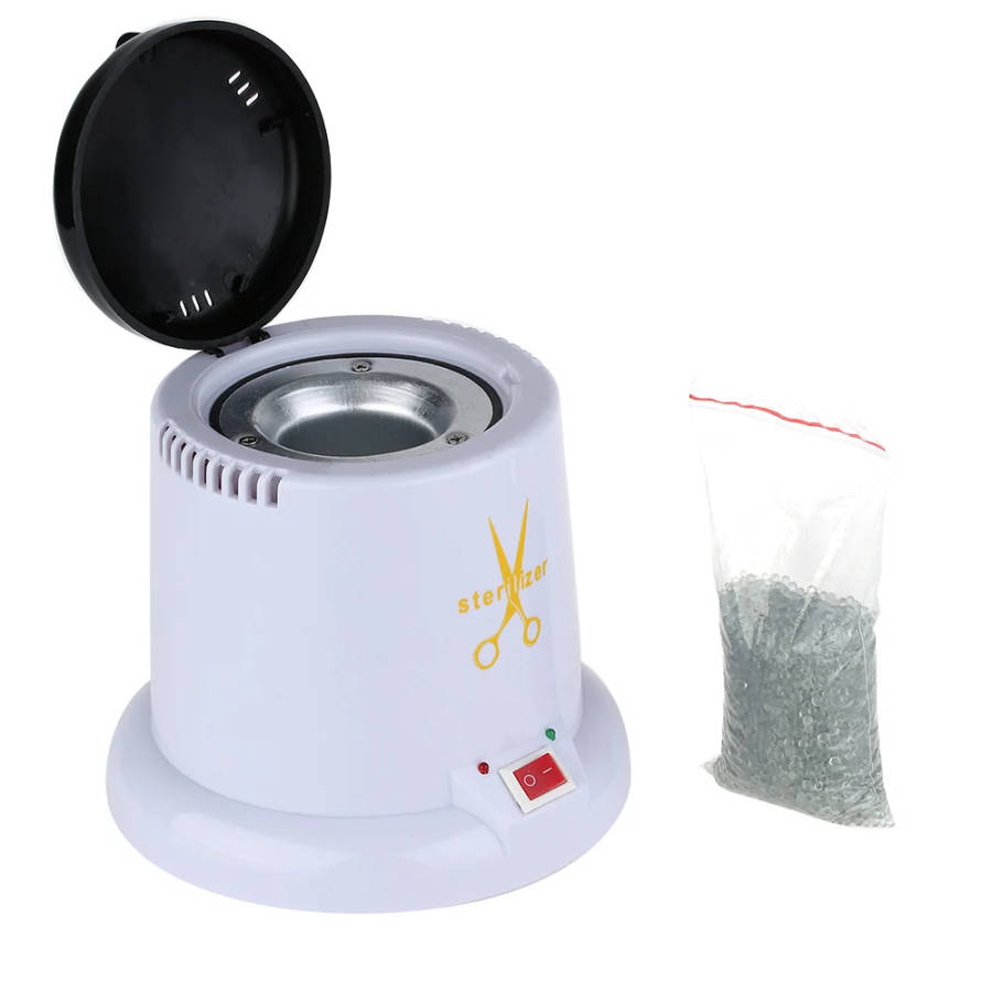 Great for metal tools, such as metal nail care tools, salon peelers, eyebrow clamp and tattoo needles, hair scissors, dermabrasion pips, etc. High working temperature, use glass quartz beads (included) so as to spread the heat evenly. Low energy consumption, white and black color.