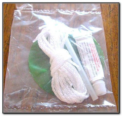 • Kit includes inflating pipe, puncture repair kit and mounting string (the bottle can be hung horizontally from above or stand vertically as pictured).