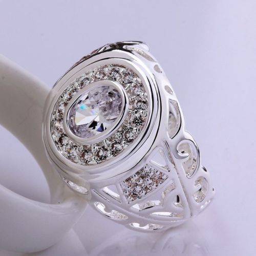 925 Sterling Silver Plated Chunky Crystal Ring With Beautiful Detail
