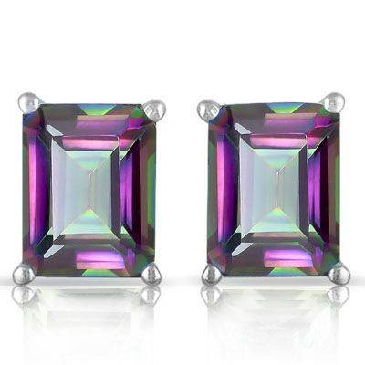**IN STOCK!!***1.8 CARAT TW (2 PCS) MYSTIC GEMSTONE PLATINUM OVER 0.925 STERLING SILVER EARRINGS