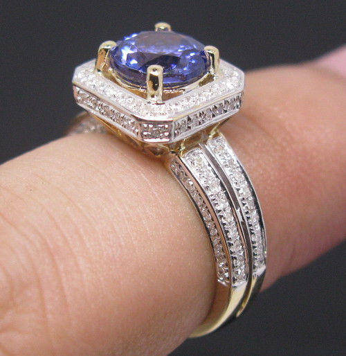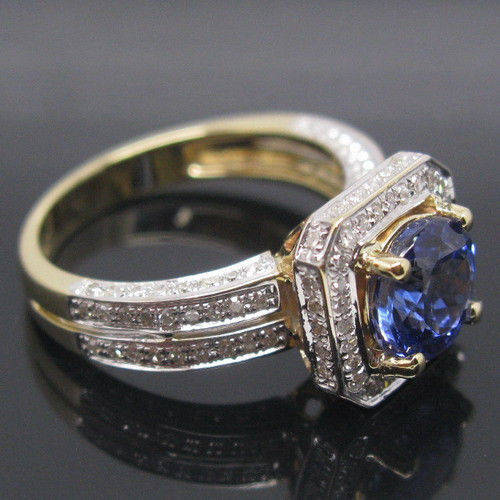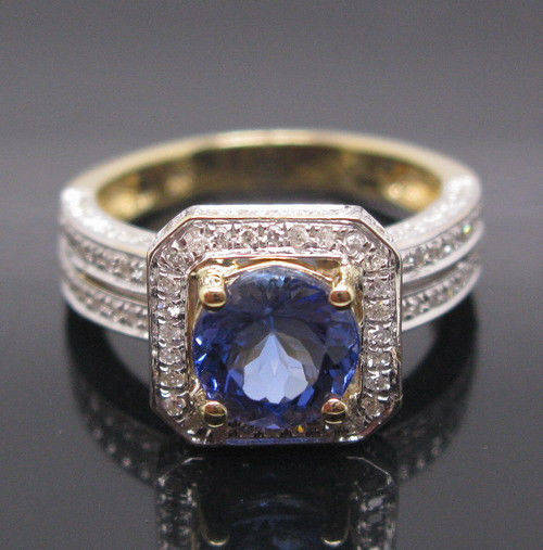 THE SETTING: Setting Metal: Solid 14K Yellow Gold Gold Weight (grams): 4.11 Style: Diamond & Tanzanite Ring US size: 6.5 UK size: M1/2 (Resizable by your jeweller)Top width: 11.0mm Bottom width: 2.3mm | DIAMOND: Natural Diamonds Weight: 0.48ct. Cut: Round Color: G-H Clarity: VS Treatment: 100% Natural | CENTER STONE: Stone Type: Natural Tanzanite Carat weight: 1.71ct Size(MM): 7.0 LENGTH. 7.0 WIDTH Color: Blue Clarity: VVS ( Very Good ) Cut: Round Cut |