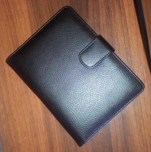 THIS IS A PU LEATHER CASE in BLACK for your Kindle 4 A STYLISH MUST HAVE for your KINDLE 4 to Protect it from any scratches, knocks or bumps. Comes with a credit card pocket to keep your money close by. Seperate LED READING LIGHT included! Uses Regular Watch Batteries to power LED Light. Battery included! A Conveniently Powerful Light with AMBIENT mood - Will not disturb those around you! Full Protection for your Kindle from Scratches and Bumps