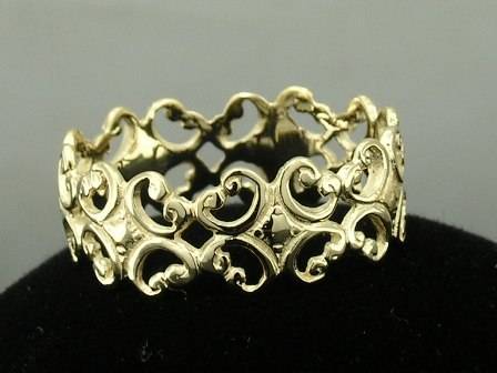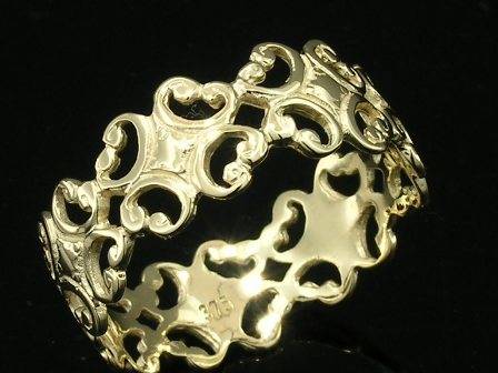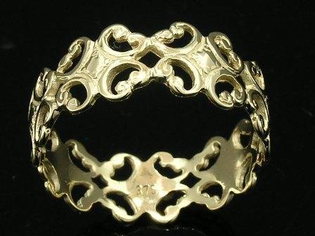 This band is made from SOLID 9ct yellow Gold in a Filigree Scroll designed pattern, that goes around the ring completely, making it a full eternity band. Perfect as a wedding or friendship band , but sure to be treasured as simply a filigree gold ring aswell. | ||||||||||||||