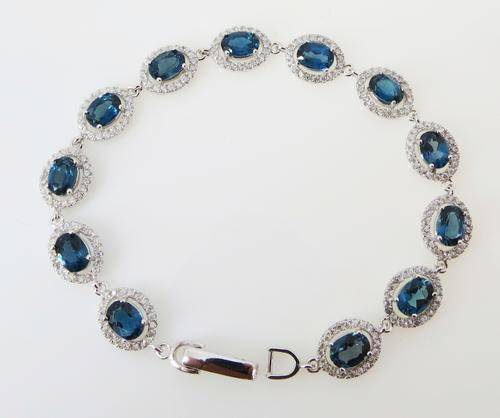 Gorgeous real oval cut London Topaz set in sterling silver tennis bracelet.