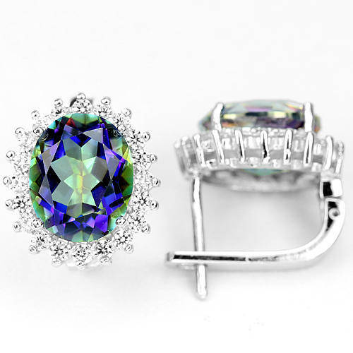 ***IN STOCK!!!**REAL STONES!!!*** GENUINE 11X9 MM. AAA MULTI COLOR TOPAZ STERLING 925 SILVER EARRING