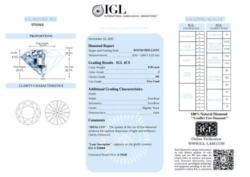 DIASCRIPT ON GIRDLE"Laser Inscription" - appears on the girdle number: IGL G-976966