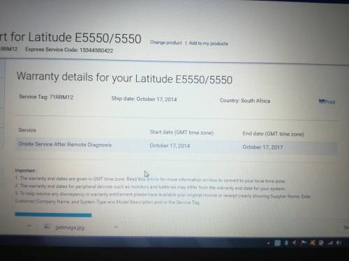 IN WARRANTY TILL OCTOBER 2017