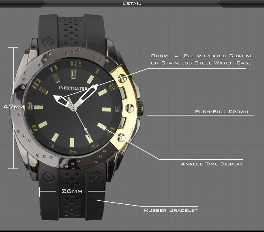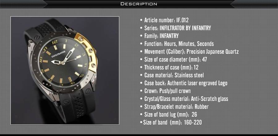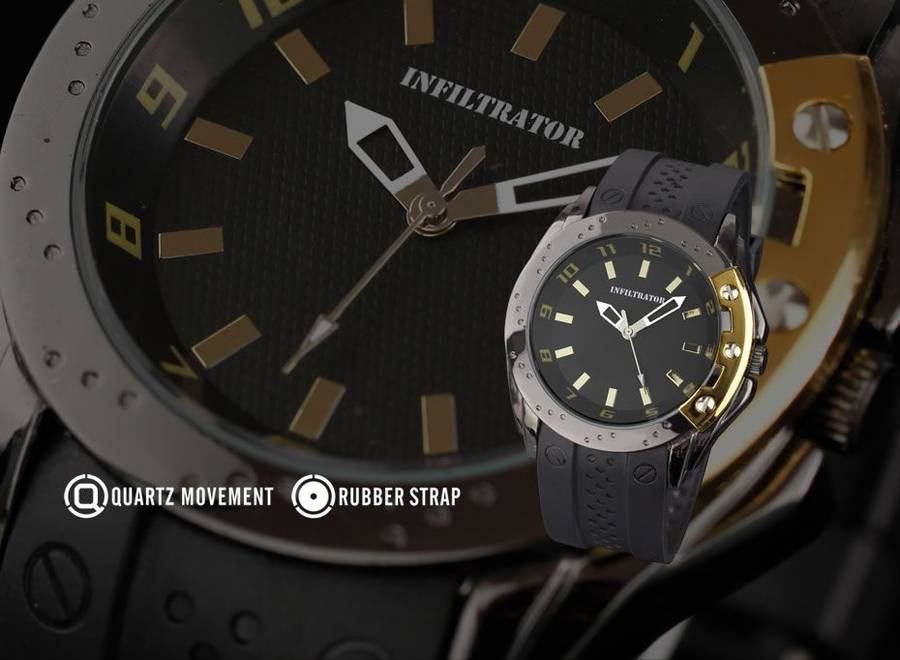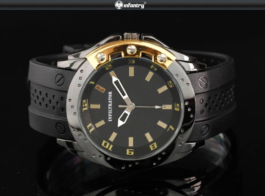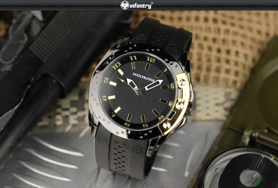 New Gents Black Rubber INFILTRATOR Army Outdoor Watch