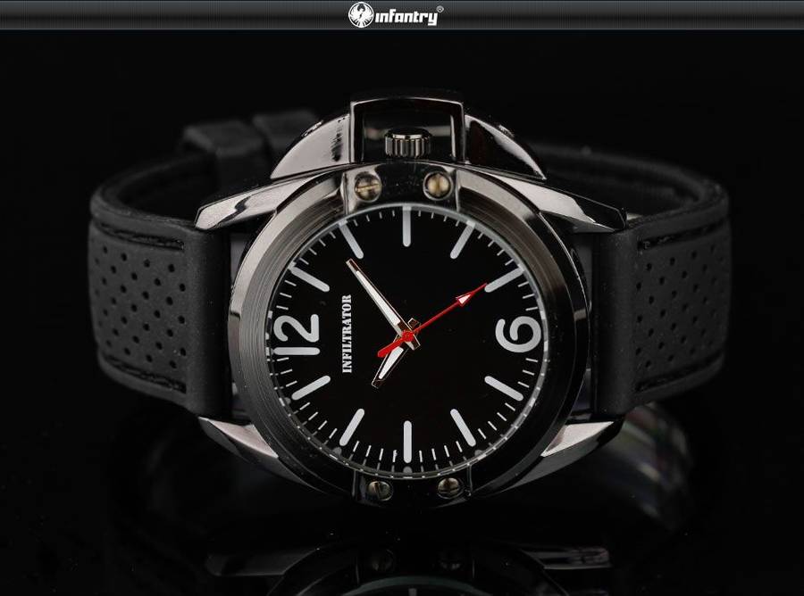 New Gents Black Rubber INFILTRATOR POLICE Army Watch
