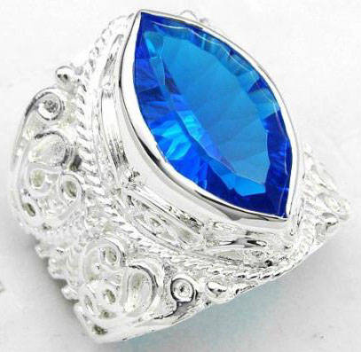 **INTERNATIONAL POSTAGE** HALLMARKED 925 STERLING SILVER SIMULATED BLU TOPAZRING