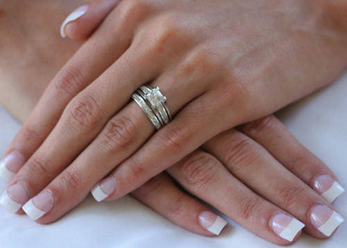 **INTERNATIONAL POSTAGE** SIMULATED DIAMOND 18K WHITE GOLD PLATED WEDDING RING SET