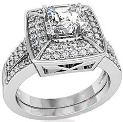 **INTERNATIONAL POSTAGE** SIMULATED DIAMOND 18K WHITE GOLD PLATED WEDDING RING SET