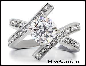 **INTERNATIONAL POSTAGE**STAINLESS STEEL SIMULATED DIAMOND RING