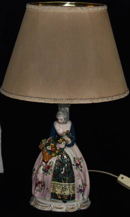 *ITALIAN*BEAUTIFUL LARGE ITALIAN PORCELAIN LAMP IN AND SHADE