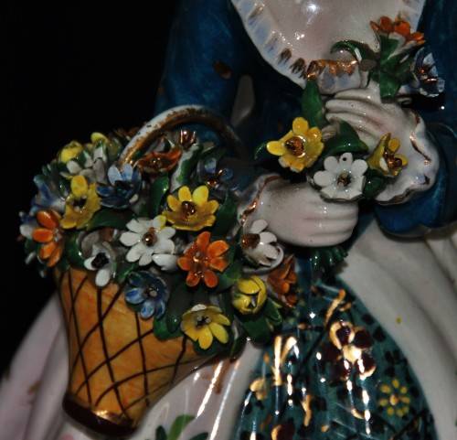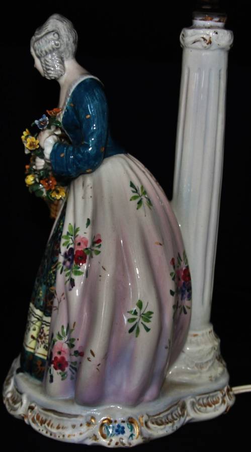 NOTE: LAMP IS STILL IN AMAZING CONDITION , VERY MINOR DAMAGE TO EXPOSED FLOWERS IN HANDS AND BASKET .. NOT NOTICEABLE AT ALL !