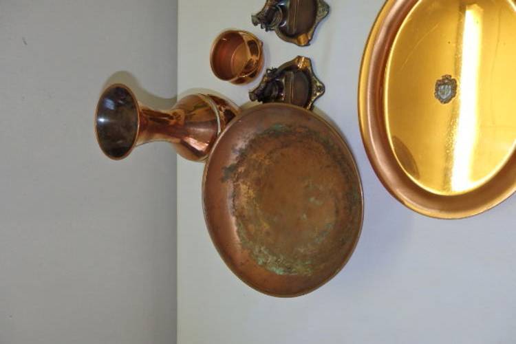 THIS JOB LOT OF MIXED COPPER PIECES INCLUDES A VASE, A PLATE, A COUPLE OF COPPER ASHTRAYS, A COAT HANGER, BOWLS ETC. YOUR ONE BID GET THE ENTIRE COLLECTION.
