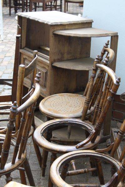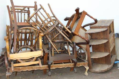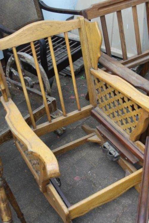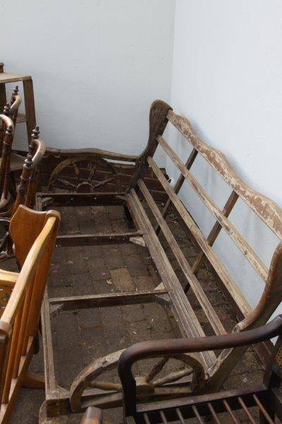 A LOT OF GOOD ANTIQUE FURNITURE FOR RESTORATION - 2 x MECHANICAL ROCKERS; 6 x SML CHAIRS; 2 x OCCASIONAL CHAIRS; 1 x COUCH / BENCH & 1 x CABINET ALL FOR ONE BID STARTING AT R1.00!!!! THIS FURNITURE NEEDS TO BE RESTORED HOWEVER SOME OF IT IS STILL IN GOOD CONDITION WHILE SOME NEEDS TOTAL RESTORATION. PLEASE VIEW THE PICS VERY CAREFULLY FOR MORE DETAIL AND CONDITION AS THIS FORMS PART OF THE DESCRIPTION; WHAT YOU SEE IS WHAT YOU GET! SHIPPING WILL NOT BE POSSIBLE SO PLEASE ARRANGE FOR COLLECTION IN EDENVALE OR WE CAN DELIVER IN GAUTENG FOR AN ADDITIONAL FEE! ONE BID GETS IT ALL!!!