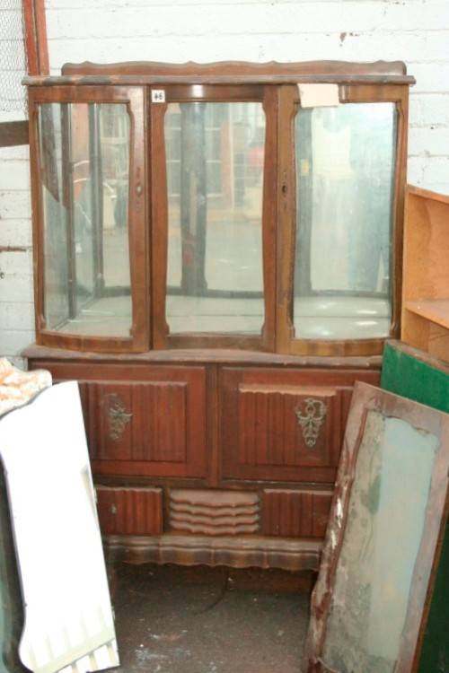 This assorted job-lot of furniture includes an a radiogram cabinet, various table and table tops, shelves, an antique chest of drawers/ dresser, antique dressing table mirrors, headboards, sash windows and lots more. The furniture is ideal for restoration and could either be restored to its former glory or painted in a shabby chic or distressed look and much of the furniture is also perfect to use as spare parts in restoring other furniture. Please view the pics carefully to confirm what is included in the listing and to confirm the condition. Your one bid gets the lot!