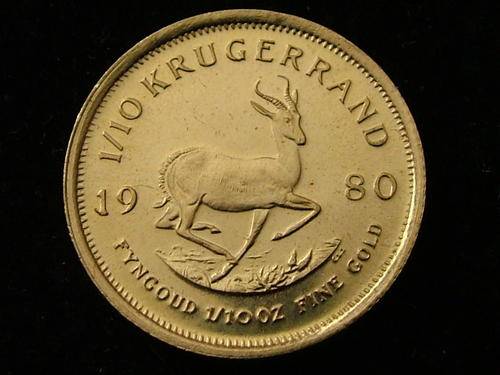 You are bidding on a 1/10th of an oz Fine Gold Kruger Rand dated 1980