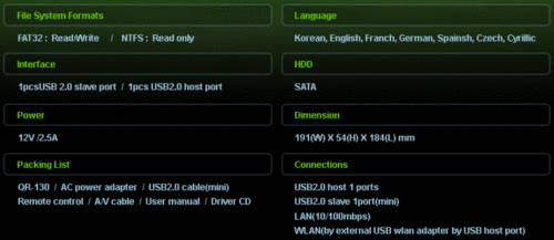 - USB Host Port : Accepts USB Storage devices such as Flash drives and play your media files straight from flash drives
