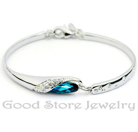!!! last one in stock!!!BEAUTIFUL BLUE TOPAZ SWAROVSKI BRACELET IN 18K WHITE GOLD CLAD