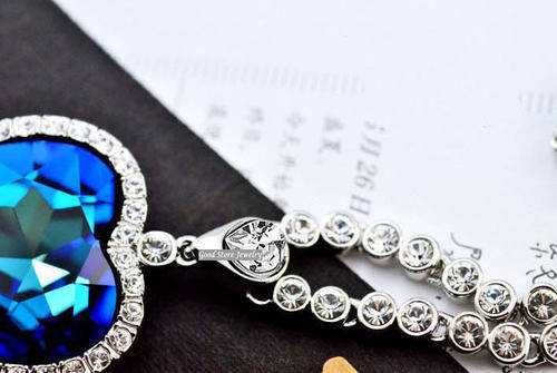 !!! last one in stock !! STUNNING ROYAL BLUE SWAROVSKI HEART NECKLACE IN 18KGP