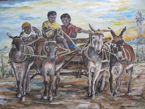 Irma paints tipical South African scenes - these include landscapes, African people and still life.