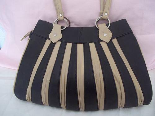 GENUINE LEATHER HAND BAG IN BLACK & TAN.