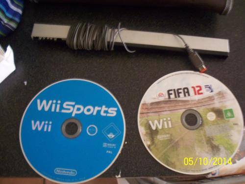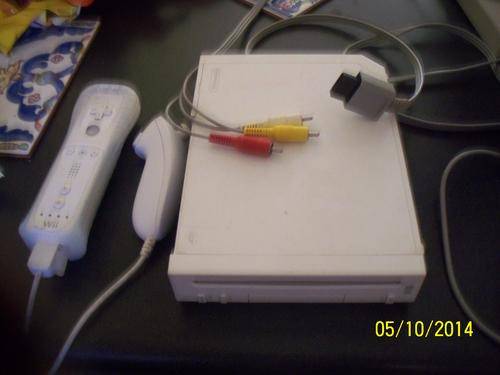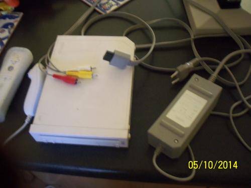 Wii console with power supply , tv cable, and Remote and Nunchuck and sensor