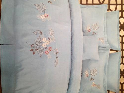 **LATE ENTRY**Stunning 6 Pcs Embroidered duvet cover set in a Lovely SKY BLUE. Queen size