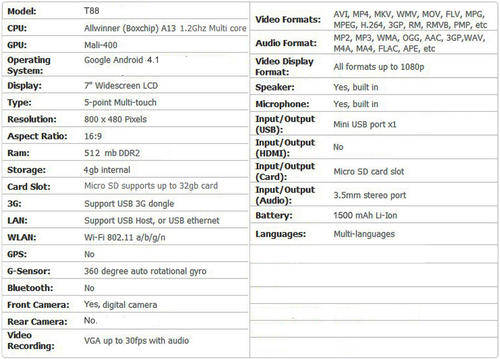 * BLACK * 7 Inch Android 4.1 Jelly Bean - 512MB RAM - 4GB built-in memory - 3G - WIFI