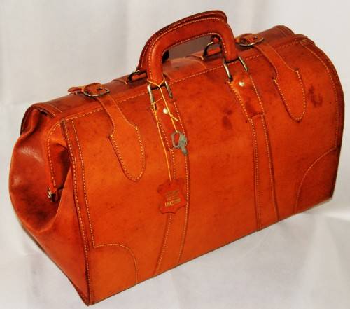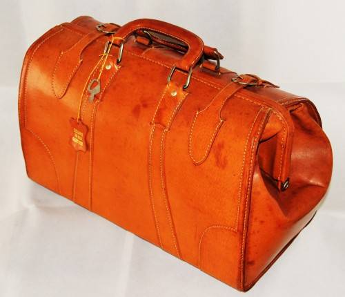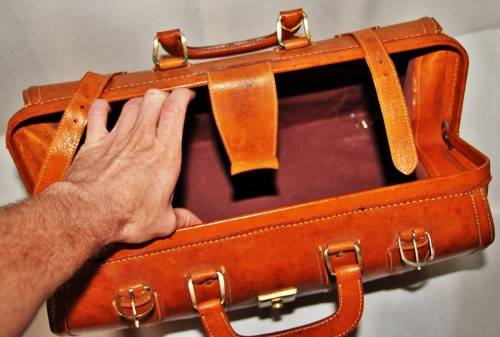 *LEATHER*BEAUTIFUL LARGE LOCKABLE VINTAGE TAN LEATHER DOCTORS SUITCASE - VALUE R4700