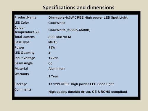 ***LED Bulb MR16*** 4 LED 12W Dimmable ** 12VDC downlight - FREE SHIPPING OPTION