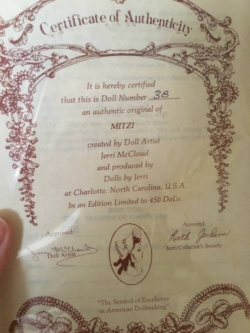 **LIMITED EDITION** JERRI MCCLOUD "MITZI" COLLECTABLE PORCELAIN DOLL