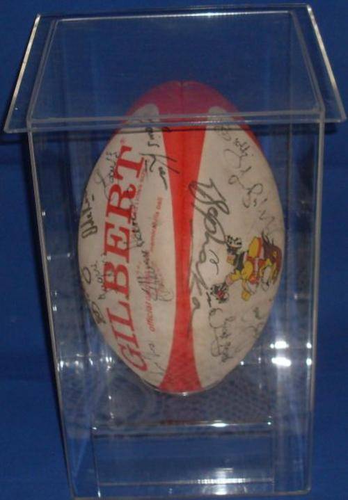 ***LIONS***SIGNED RUGBY BALL***ON STAND IN PERSPEX CASE WITH LID********@ ONLY R1300.00********