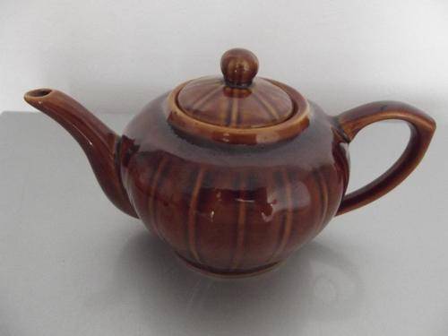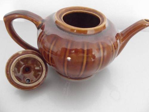 On offer is a little brown tea pot made in china which is 9cm tall and 12cm wide. The lid has a chip on the inside of the lid as seen on the scan. The tea pot has no chips or cracks.