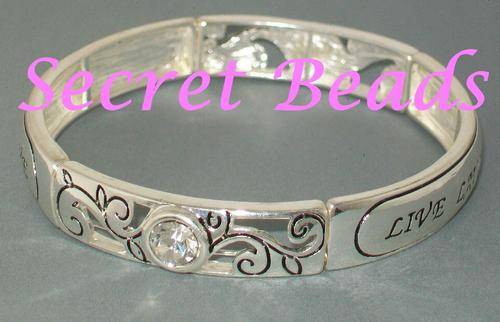 "Live, Laugh, Love" Antique Silver STRETCH Bracelet - Clear Crystal Insets (1pc)