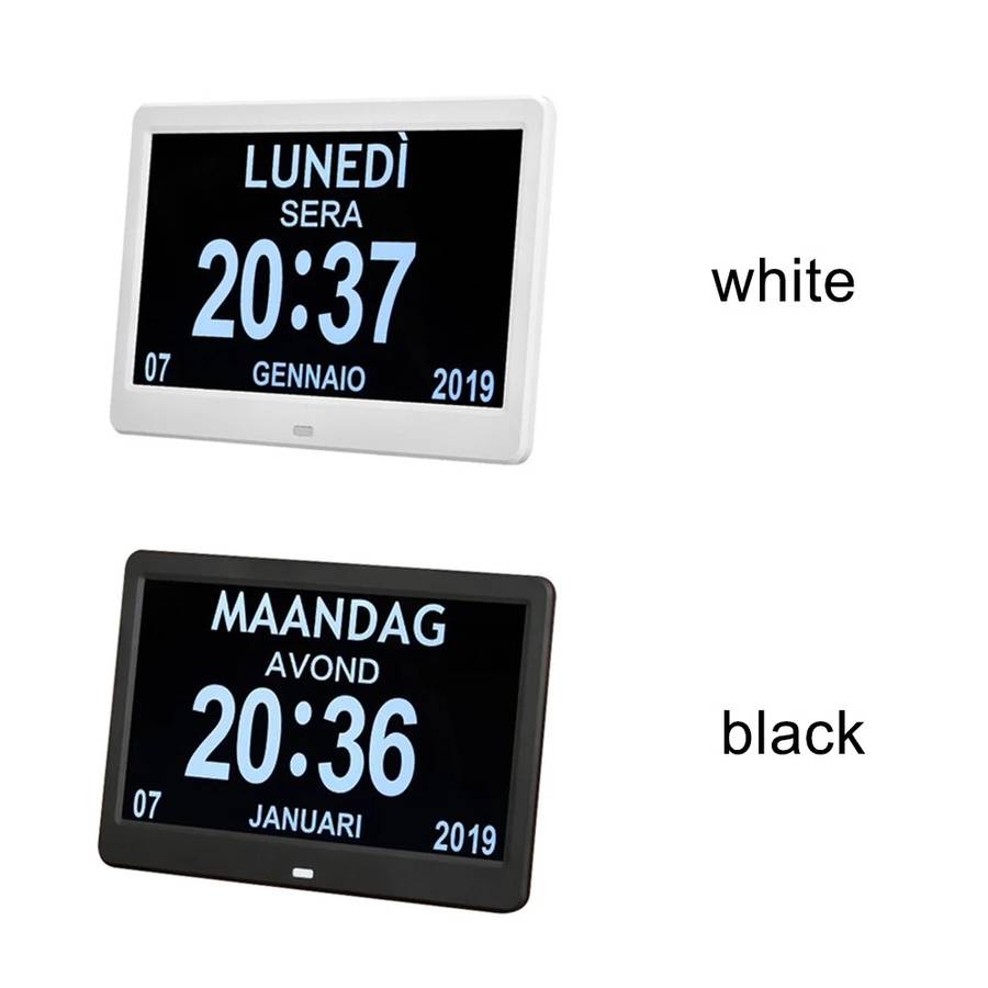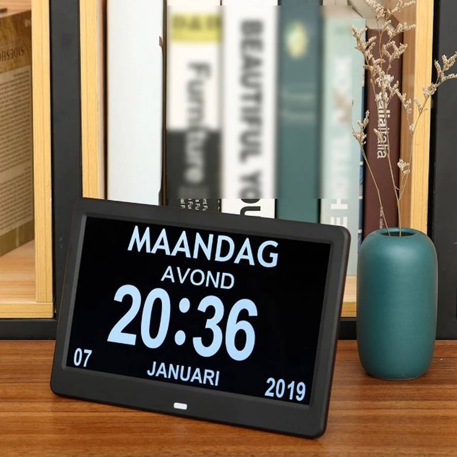 This is a kind of fine quality digital clock, 10.1 inch TFT LED screen, high definition display, 1024 * 600 * RGB pixel, provides clear effect. Can display the day, week and month, large time display, simple and easy to read. Dual time and data mode: can be easily set to 12 hour or 24 hour, month-day-year or day-month-year. Support 7 languages, English, Nederland, French, Deutsch, Italian, Spanish, Polski. Suitable for home, office or even classroom. You can have a try.
