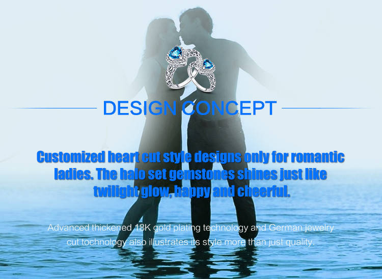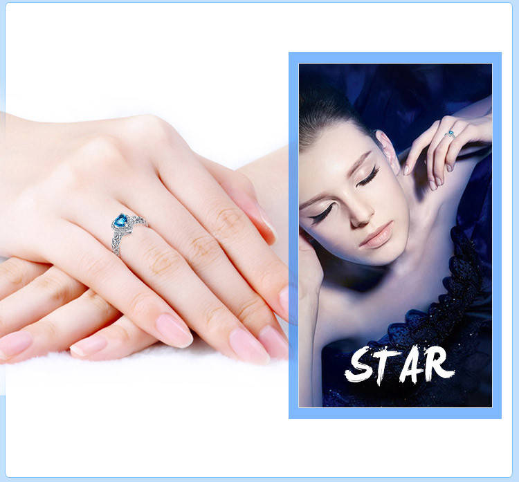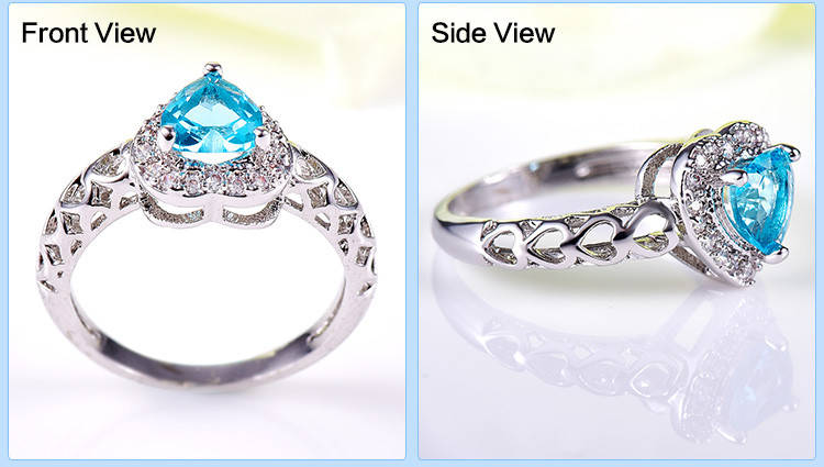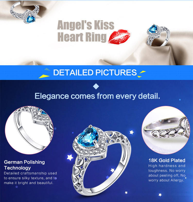 ***LOCAL STOCK*** Angel's Kiss Heart Ring - London Blue Topaz White CZ Diamond 18K White Gold Filled