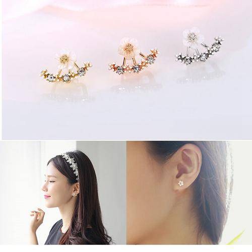 Cute Daisy Flower Crystal Stud Earrings For Women (Silver)