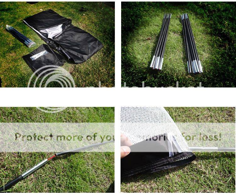 High quality, durable all-weather nylon netting. Entire net assembly conveniently collapses in fits nicely in to an included nylon carry-bag. Every piece of the net is securely seamed together to keep all balls on the cage floor for easy retrieval.