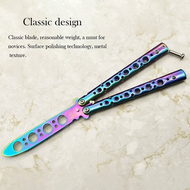 HUOHOU Colorful Stainless Steel EDC Knife Butterfly Training Outdoor Knife Competition Knife Blunt Tool No Blade Balisong Trainer