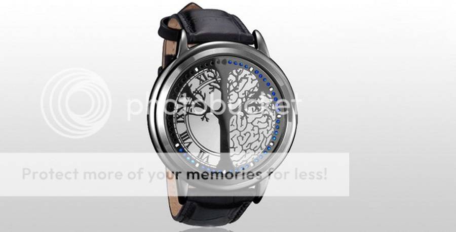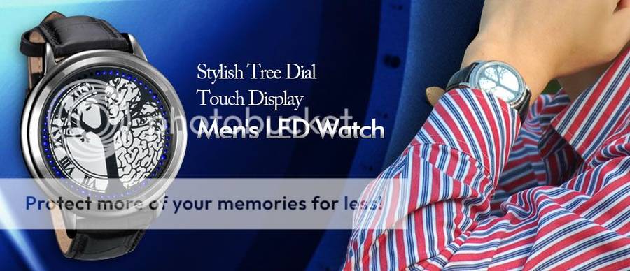 This touch display LED watch is stylish and equipped with a tree dial. When you touch the screen, it will display the time with blue and white LEDs.