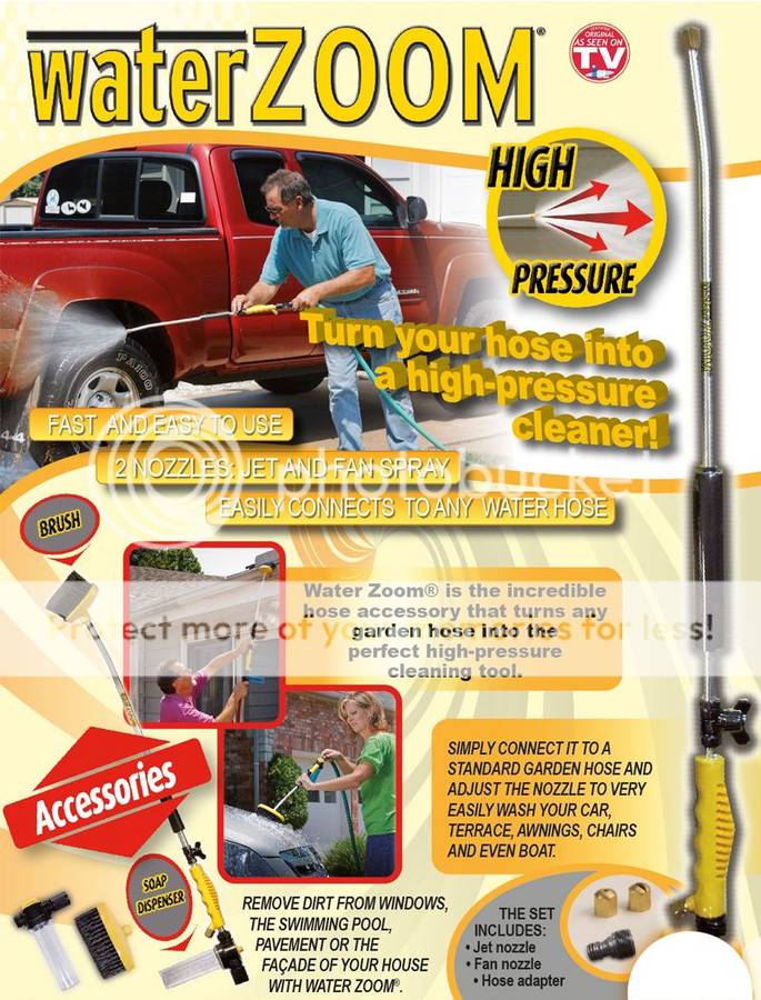 Simply connect it to a standard garden hose and adjust the nozzle to very easily wash your car, terrace, awnings, chairs and even boat. Remove dirt from windows, the swimming pool, pavement or the facade of your house with Water Zoom.