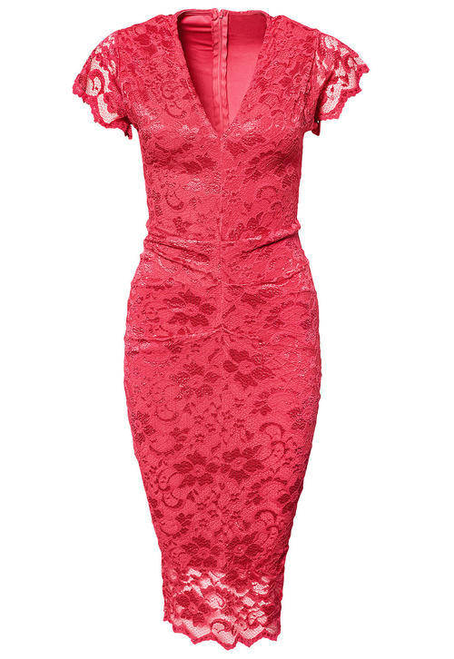 *LOCALLY IN STOCK* STUNNING PINK V NECK ALL OVER LACE MIDI DRESS